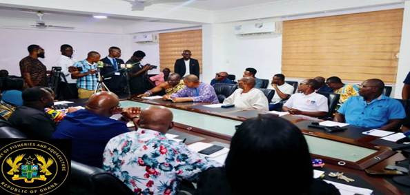 The Hon. Minister for Fisheries and Aquaculture, Hon. Emelia Arthur, held a media engagement today, 30th July 2025, at the Ministry’s Conference Room to address ongoing illegal practices in the fisheries sector, particularly the harmful activity of light fishing.